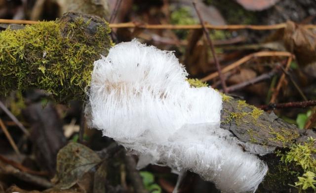 В геопарке «Янган-Тау» обнаружили редкое природное явление — «ледяные волосы», или «волосатый лед». Это сноп тончайших ледяных волосков, растущих на подгнившем дереве.