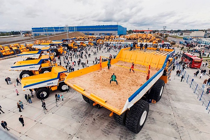 В Беларуси в кузове самосвала БЕЛАЗ-75711 сыграли в пляжный волейбол