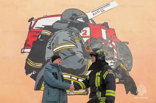 В Благовещенске на пожарной части появился мурал с необычной историей создания. В канун Нового года в амурской столице встретились двое сотрудников МЧС России из разных регионов. Их история началась около двух лет назад, когда в объектив фотоаппарата сотрудника пресс-службы ГУ МЧС России по Астраханской области Юрия Бурдакова на пожаре попал огнеборец Олег Иванов.