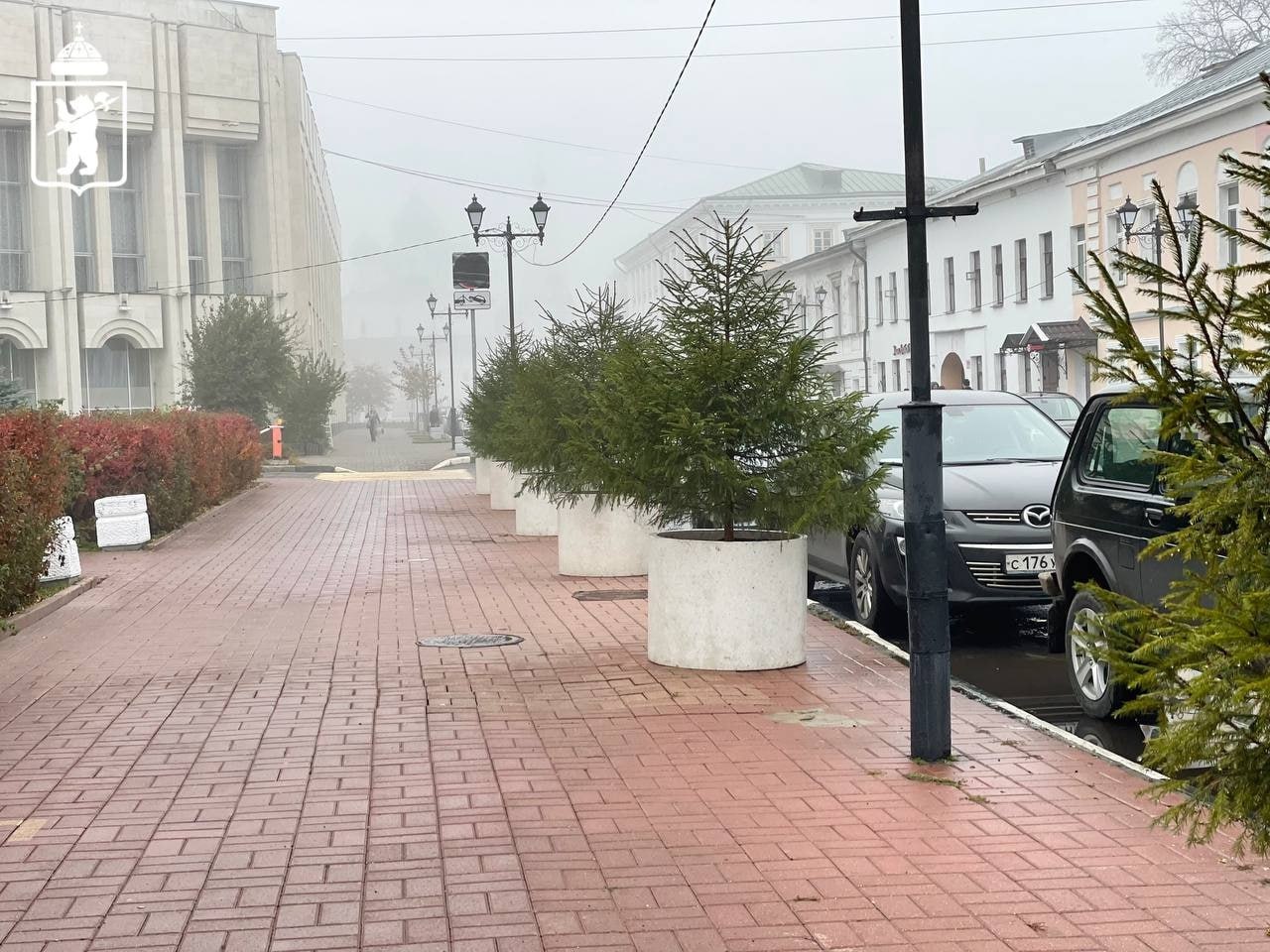 В центре Ярославля посадили в цветочные кашпо новые ели