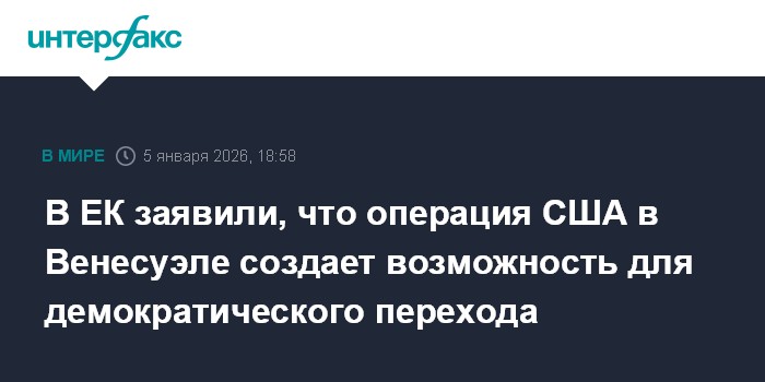 Москва. 5 января. INTERFAX.RU - В Еврокомиссии (ЕК) не считают самым важным в данный момент подбирать определение для действий США в Венесуэле, но полагают, что они создали возможность для демократического перехода, заявила пресс-секретарь ЕК Паула Пинью.