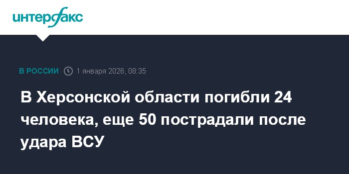 Москва. 1 января. INTERFAX.RU - В Херсонской области погибли 24 человека, еще как минимум 50 пострадали после удара ВСУ по кафе и гостинице, сообщил губернатор региона Владимир Сальдо в четверг.