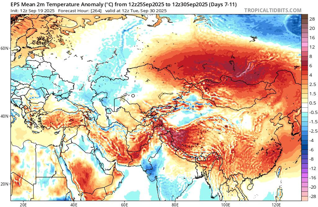 Другая публикация подтверждает скорое похолодание: по данным карт температурных аномалий, с 23–24 сентября температура воздуха начнет быстро снижаться.