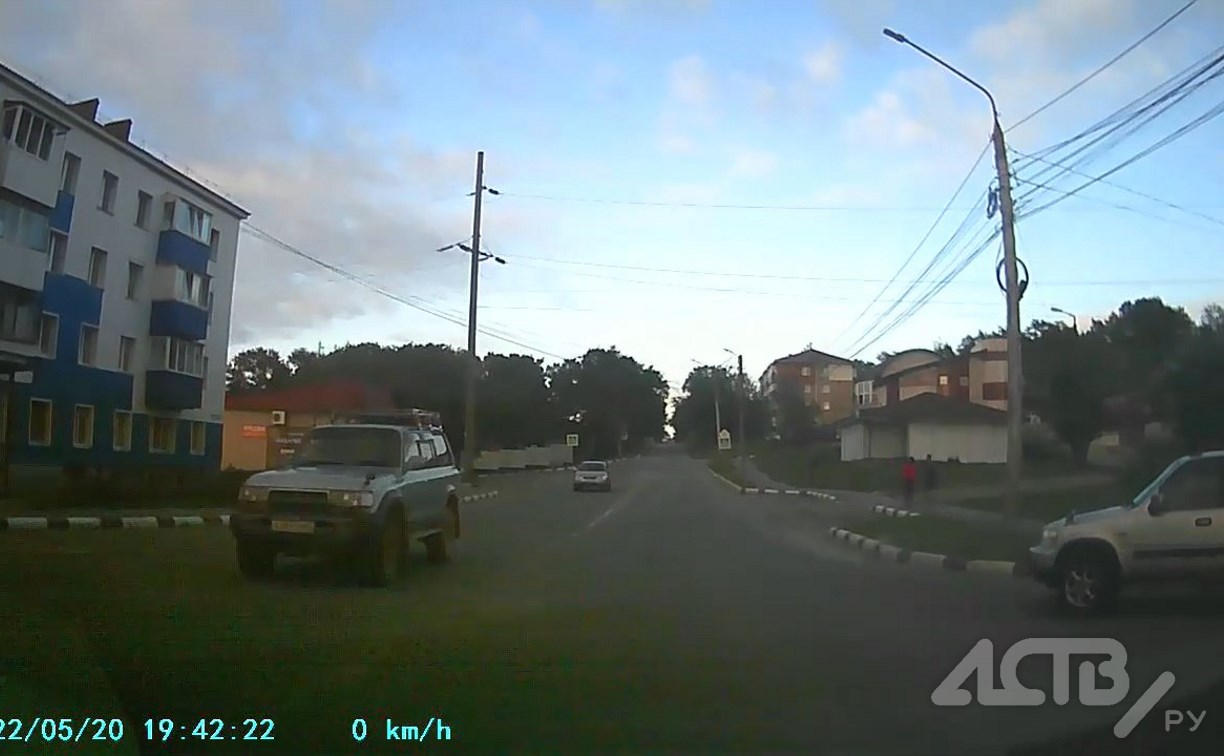 В Корсакове водитель мини-джипа спровоцировал опасную ситуацию на дороге, неожиданно выехав на главную улицу с второстепенной.