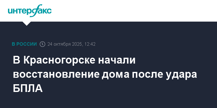 Москва. 24 октября. INTERFAX.RU - В Красногорске начали восстанавливать дом, в который попал БПЛА, сообщила администрация городского округа.
