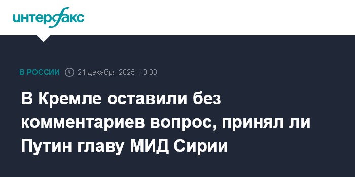Москва. 24 декабря. INTERFAX.RU - Пресс-секретарь президента РФ Дмитрий Песков оставил без комментариев вопрос, принял ли Владимир Путин главу МИД Сирии Асаада аш-Шибани и обсуждалась ли на встрече судьба российских военных баз.
