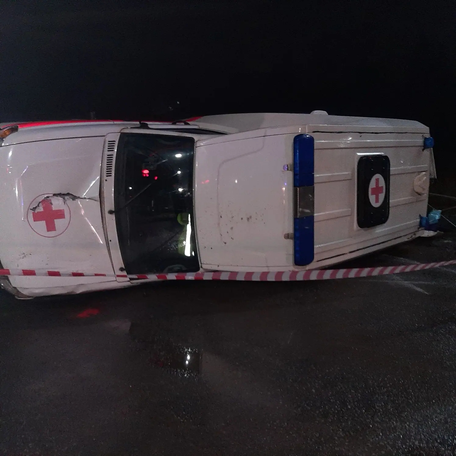 Когда сотрудники прибыли на место ДТП, они обнаружили перевёрнутую машину скорой помощи и повреждённый автомобиль «ВАЗ». Пожарные провели отключение аккумуляторов автомобилей и осмотр на утечку топлива.
