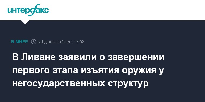 Москва. 20 декабря. INTERFAX.RU - Премьер Ливана Наваф Салам заявил, что военные практически закончили первый этап операции по конфискации оружия у всех негосударственных сил, который проходил в районах страны южнее реки Эль-Литани, сообщает в субботу телеканал LBCI.