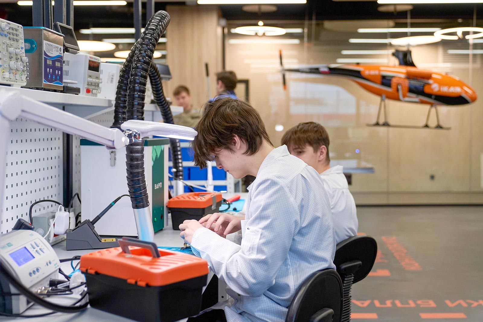 Для выполнения заданий создадут все необходимые условия — 150 дронов, 32 стола с оборудованием для мобильной робототехники, 16 дрон-сеток и 400 столов с компьютерами.