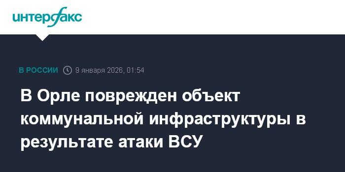 Москва. 9 января. INTERFAX.RU - Губернатор Орловской области Андрей Клычков сообщил, что объект коммунальной инфраструктуры Орла поврежден в результате атаки.