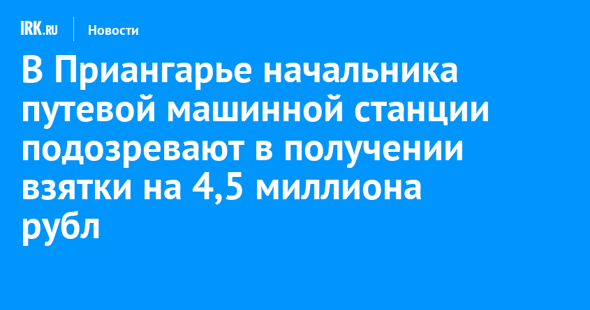 В Приангарье начальника путевой машинной станции подозревают в получении взятки на 4,5 миллиона рублей