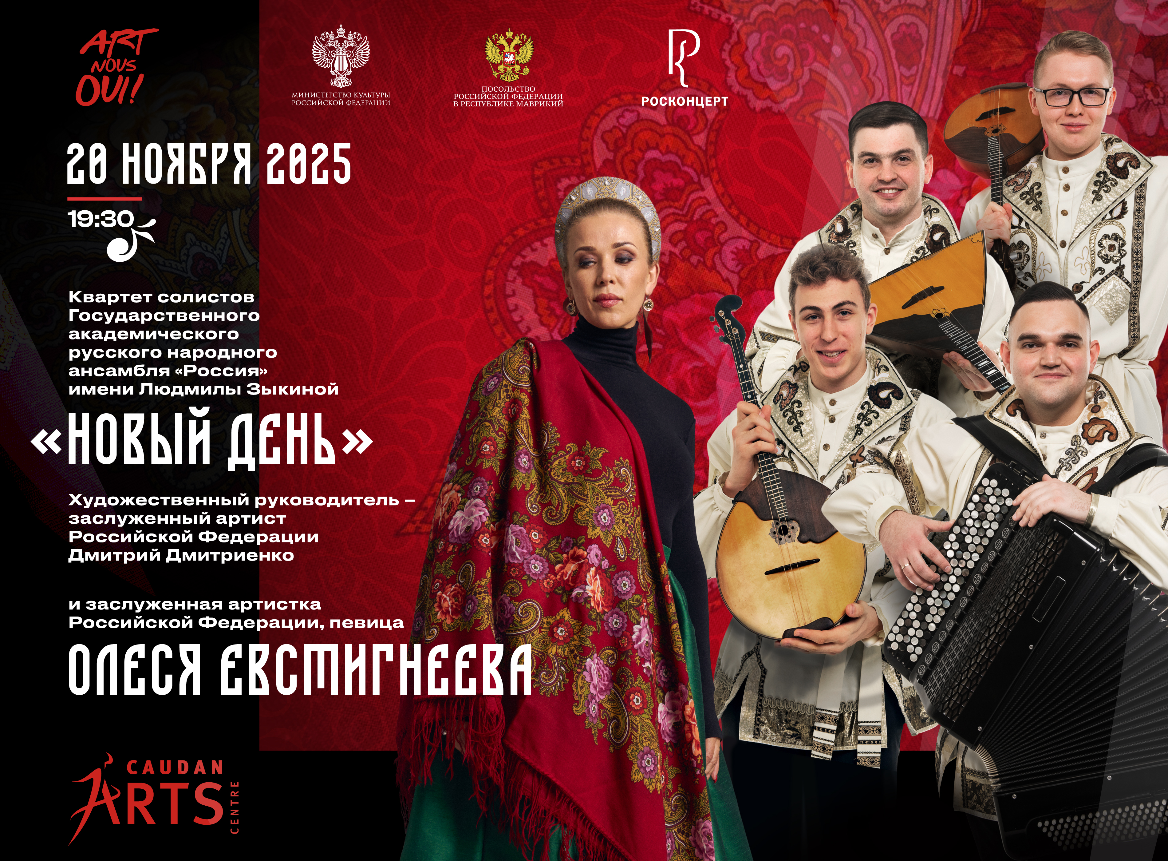 На сцене Caudan Arts Centre города Порт-Луи выступит исполнительница народной и фолк-поп музыки, художественный руководитель национального фестиваля «Солнце Красное», заслуженная артистка России Олеся Евстигнеева. Также в концерте примет участие Квартет солистов Государственного академического русского народного ансамбля «Россия» имени Л.Г. Зыкиной «Новый день»: лауреаты международных конкурсов Тимур Галинуров (баян), Валентин Солгалов (балалайка), Святослав Кайзер (домра) и Игорь Кокшаров (балалайка-контрабас). Художественный руководитель – заслуженный артист России Дмитрий Дмитриенко.