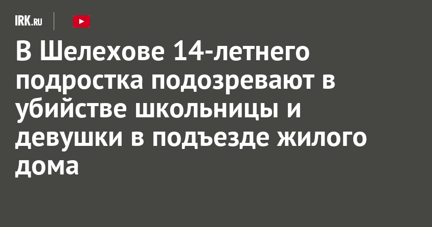 В Шелехове 14-летнего подростка подозревают в убийстве школьницы и девушки в подъезде жилого дома