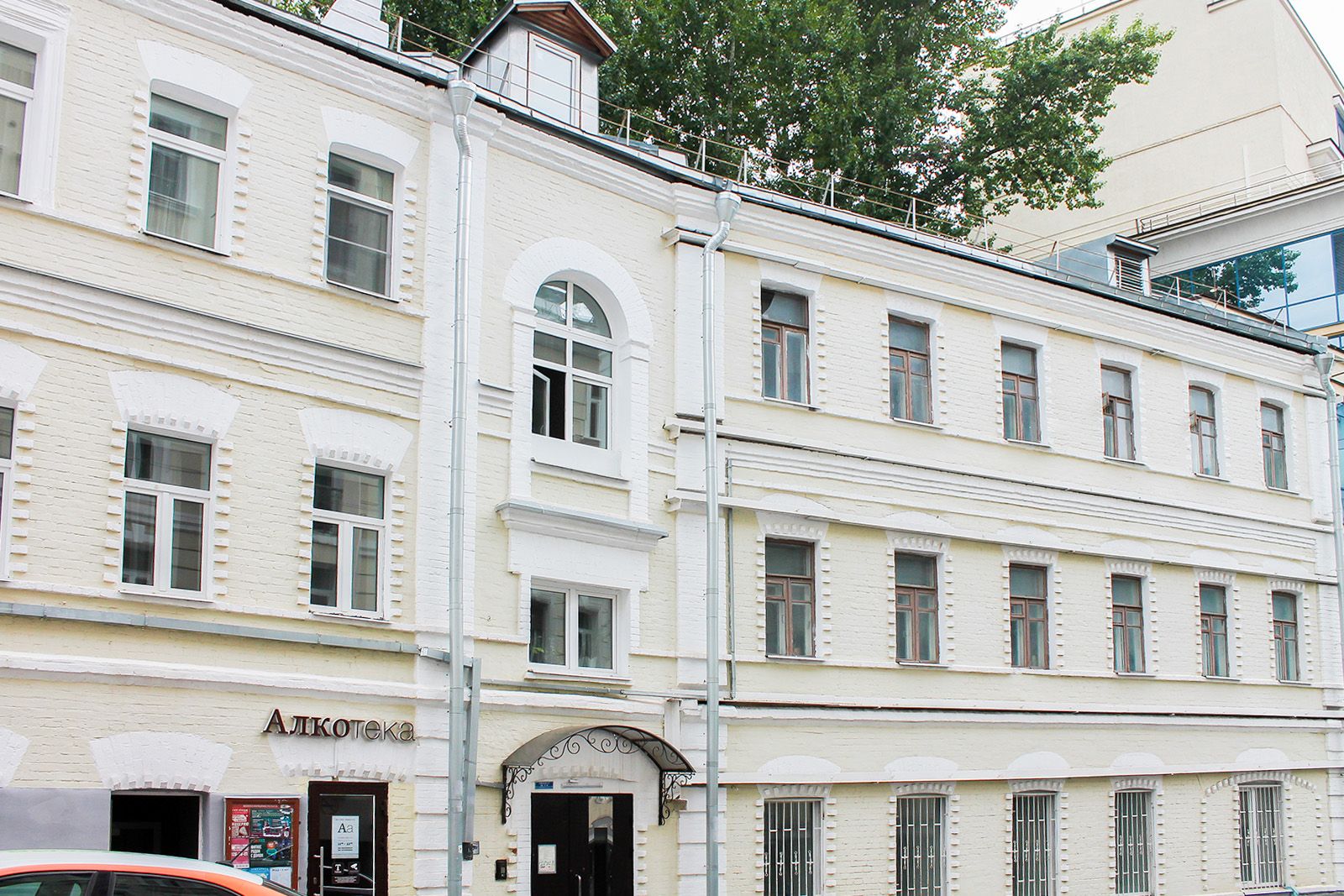 Затем восстановили историческое колористическое решение: декоративные элементы окрасили в серый оттенок, а основной фасад — в бежевый чеснок. Кроме того, обновили входную группу. Сейчас специалисты завершают ремонт цоколя, параллельно ремонтируя кровлю и подвальные помещения.
