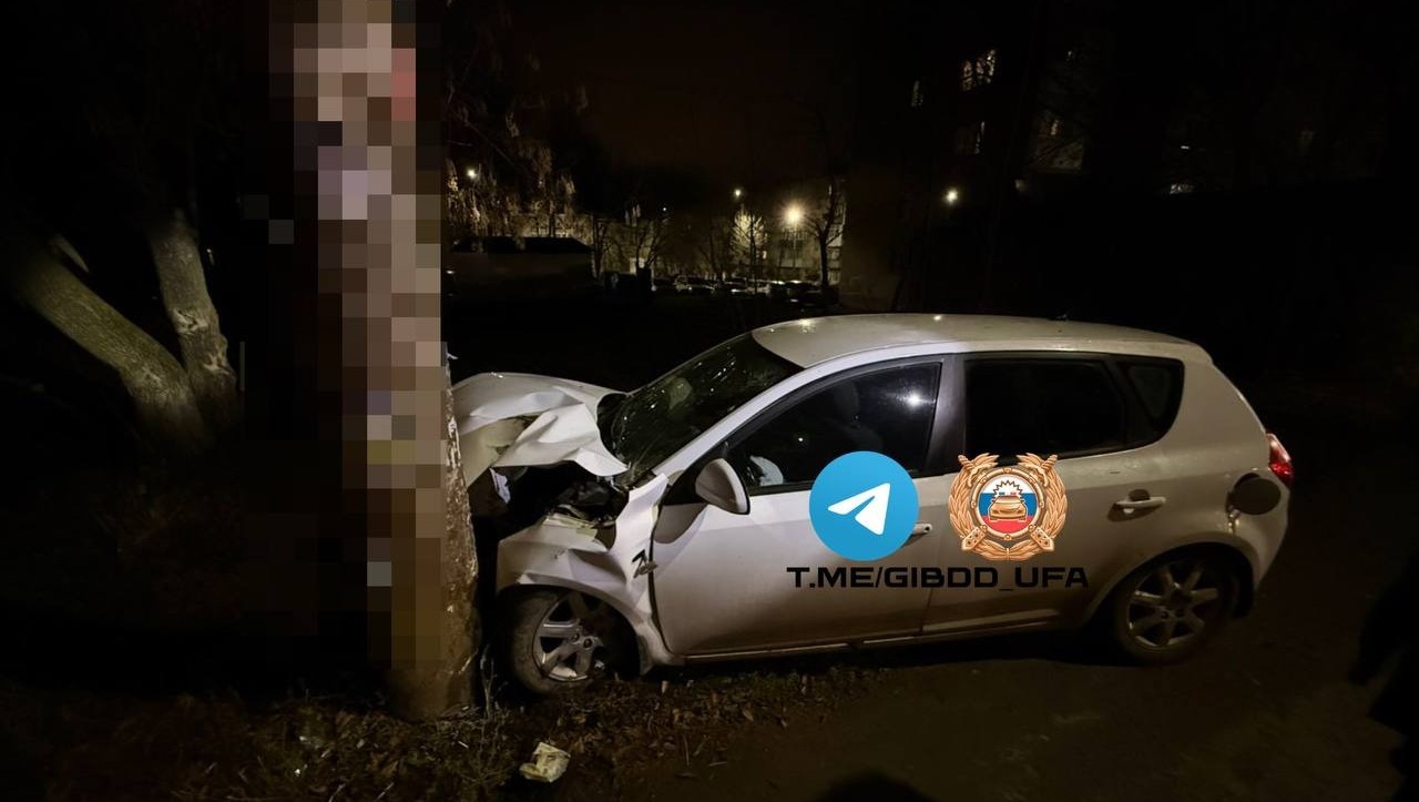 В Уфе автомобиль Kia Ceed врезался в электроопору. Водитель находился в состоянии опьянения.