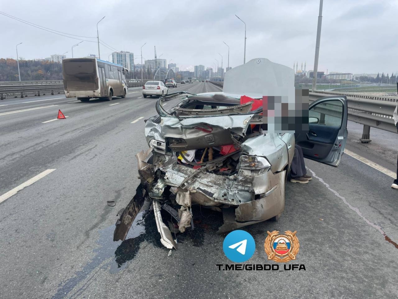По данным ГАИ Уфы, днем 19 октября водитель, 1972 года рождения, за рулем «Киа Карнивал» ехала по Бельскому мосту со стороны Дёмского шоссе в сторону ул. Заки Валиди. Здесь она допустила столкновение с впереди остановившейся в попутном направлении из-за поломки машиной «Рено Лагуна», также от удара механические повреждения получил автомобиль «Шкода Октавиа».