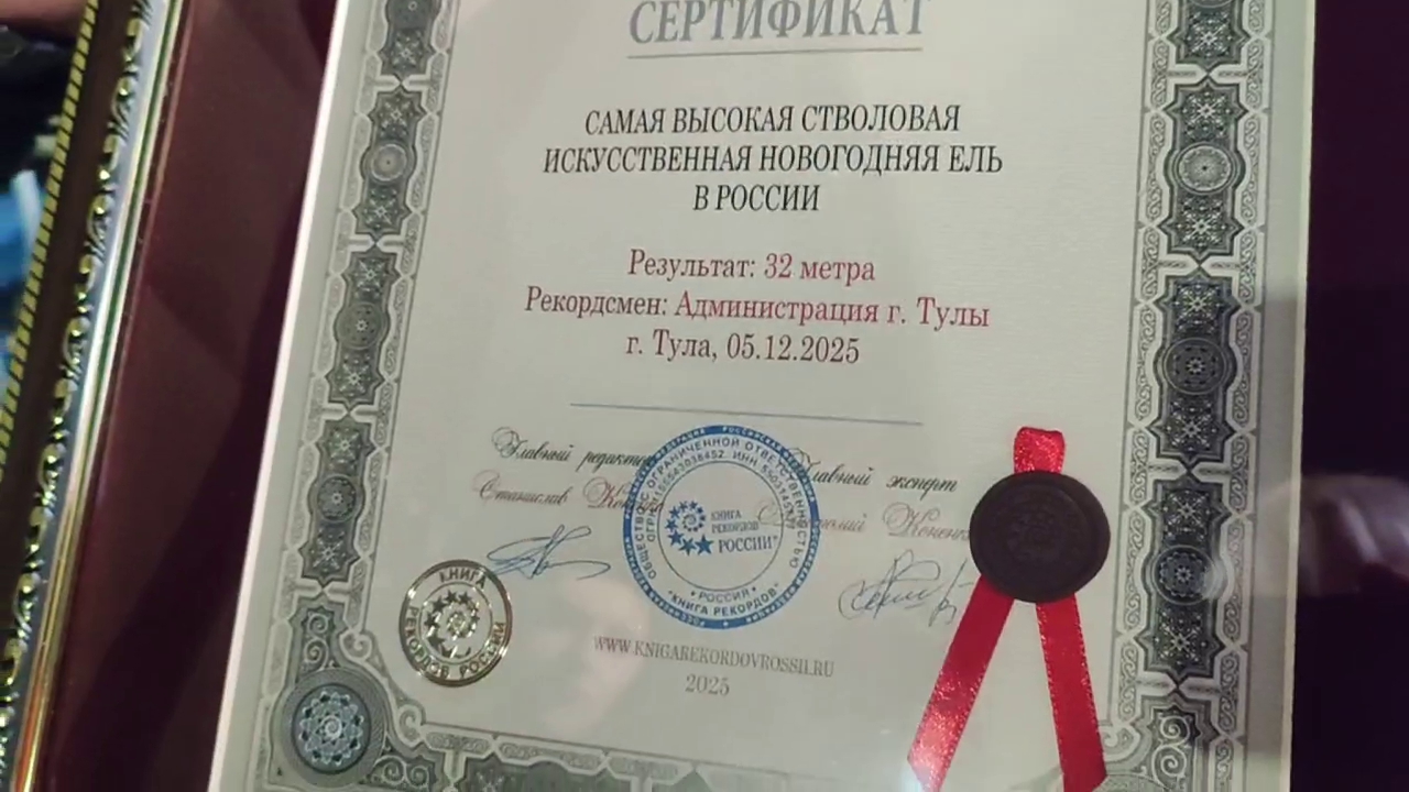 На ветвях красуются яркие игрушки в виде тульских пряников, самоваров и подков. Для жителей и гостей города это уже стало центром притяжения: во время открытия Губернского катка на площади царит атмосфера праздника, работают ярмарки, звучит музыка, а на большом экране туляков поздравляет хоккеист Александр Овечкин.