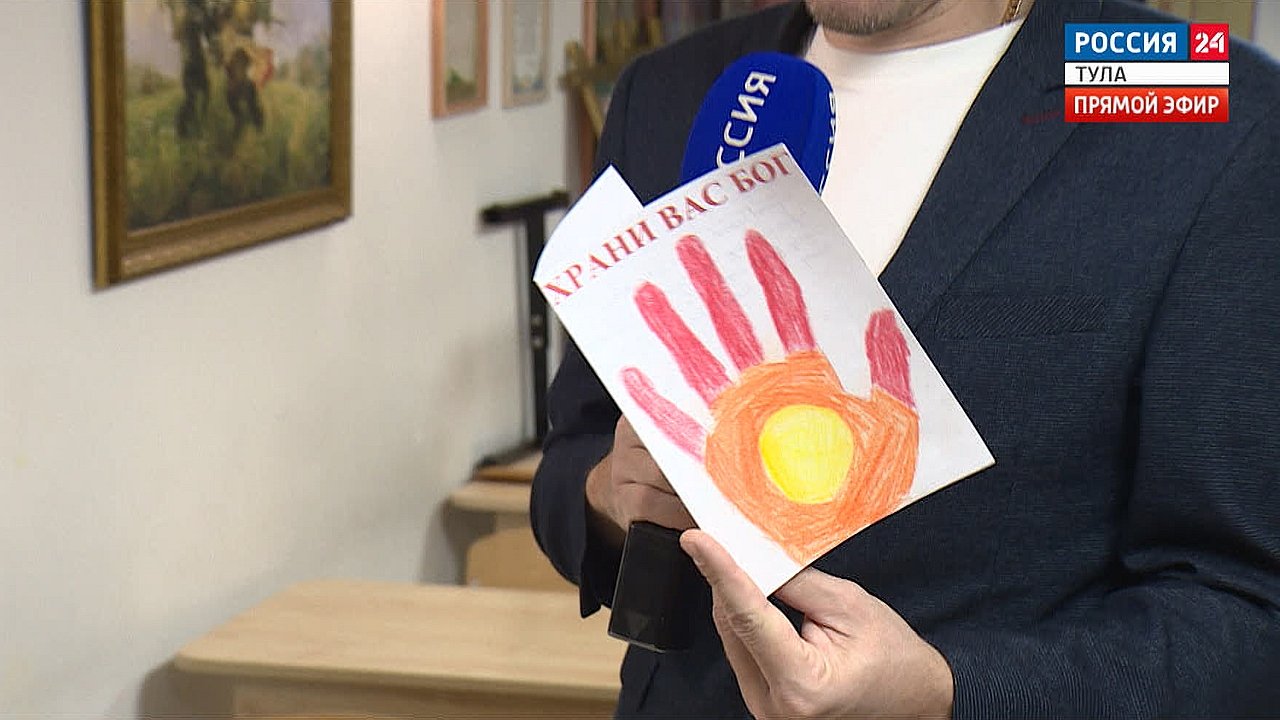 Воспитанники Воскресной школы своими руками делают для бойцов открытки. Внутри – слова поддержки и икона пресвятой Богородицы. Настоятель храма и сам частый гость в зоне СВО. Миссия церкви заключается не только в материальной части, говорит священнослужитель.