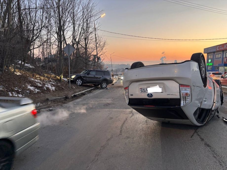 Во Владивостоке на Выселковой обнаружен перевертыш и битый внедорожник