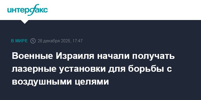 Москва. 28 декабря. INTERFAX.RU - Компания Rafael Advanced Defense Systems передала Армии обороны Израиля первую из заказанных лазерных систем ПВО Iron Beam, сообщает в воскресенье The Times of Israel.