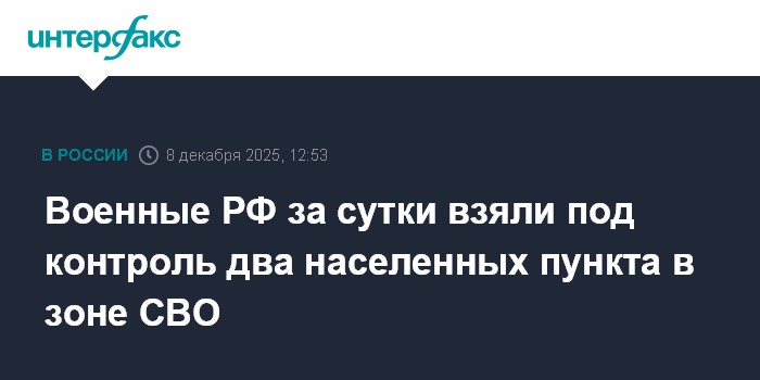 Москва. 8 декабря. INTERFAX.RU - Минобороны РФ сообщило, что в течение суток под контроль российских военных перешли два населенных пункта.