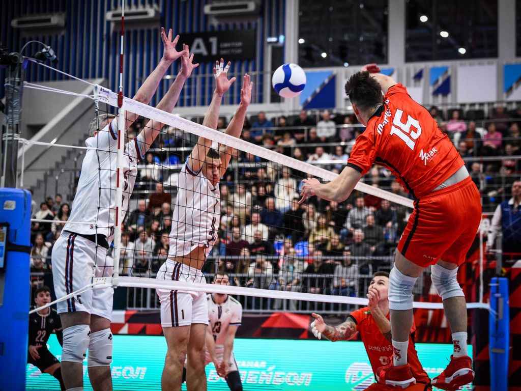В первом сете команды шли вплотную друг другу, но концовка осталась за белгородцами. Андрей Марченко поставил точку – 25:20.