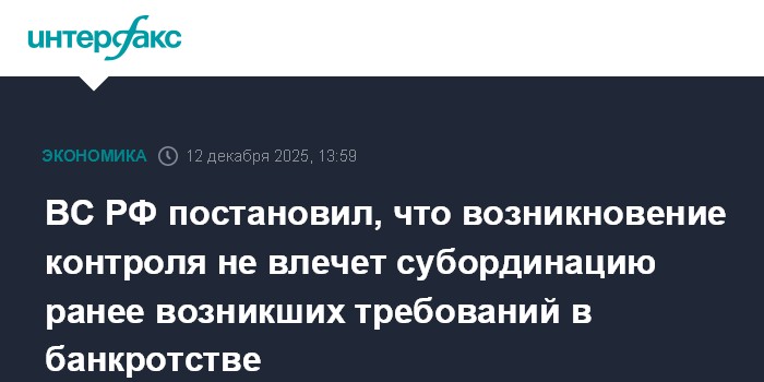 ВС РФ постановил, что возникновение контроля не влечет субординацию ранее возникших требований в банкротстве