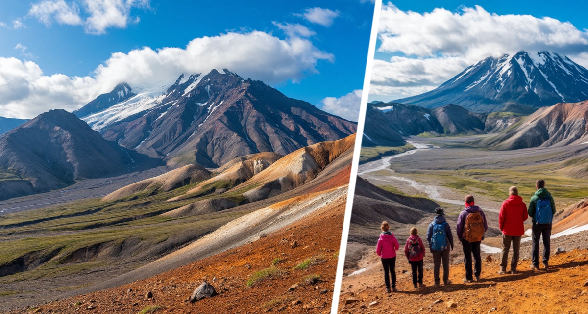 - Толбачик: Вулканический массив, известный своими «лунными» пейзажами, которые образовались в результате крупных извержений в 1975 и 2012 годах.
