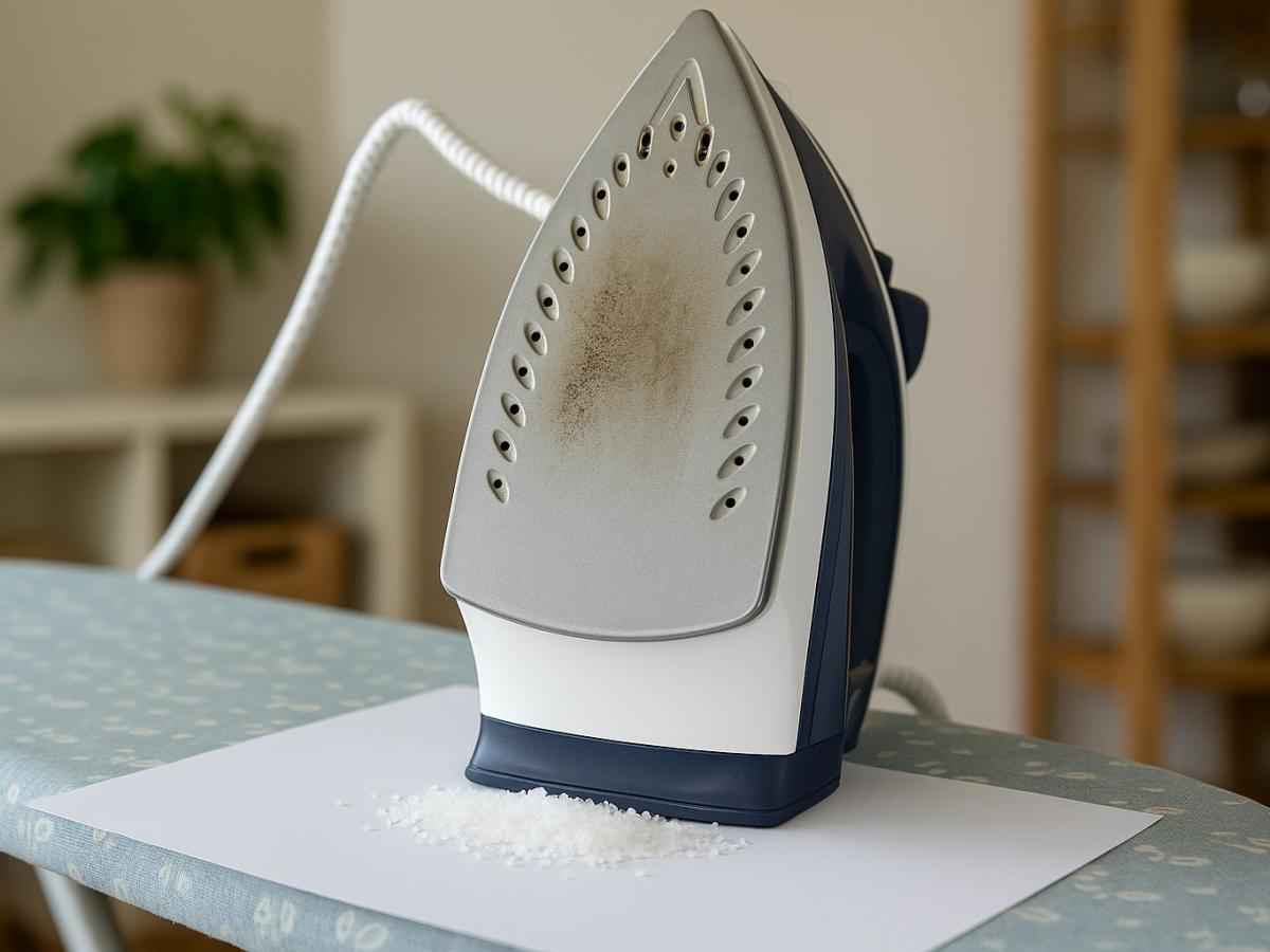 Фото: Generated by AI (DALL·E 3 by OpenAI) is licensed under Free for commercial use (OpenAI License) Чистка утюга солью Почему утюг темнеет и пачкаетсяОсновная причина — остатки волокон тканей, крахмала или моющих добавок, которые прилипают к горячей поверхности. При высокой температуре они плавятся и образуют плотную корку. Если не чистить утюг регулярно, эти загрязнения "прикипают” намертво, а потом начинают оставлять пятна на свежевыстиранной одежде.