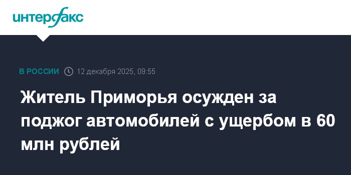 Житель Приморья осужден за поджог автомобилей с ущербом в 60 млн рублей