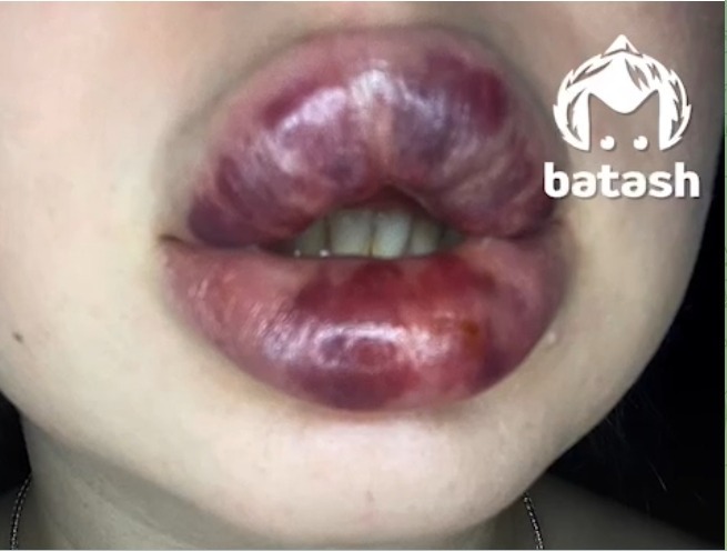 По словам девушки, проблемы начались уже во время инъекции – стал нарастать сильный отёк. Врач сказала, что отёк временный и спадёт. Однако вечером ситуация ухудшилась - губы стали кровоточить, появились гематомы.