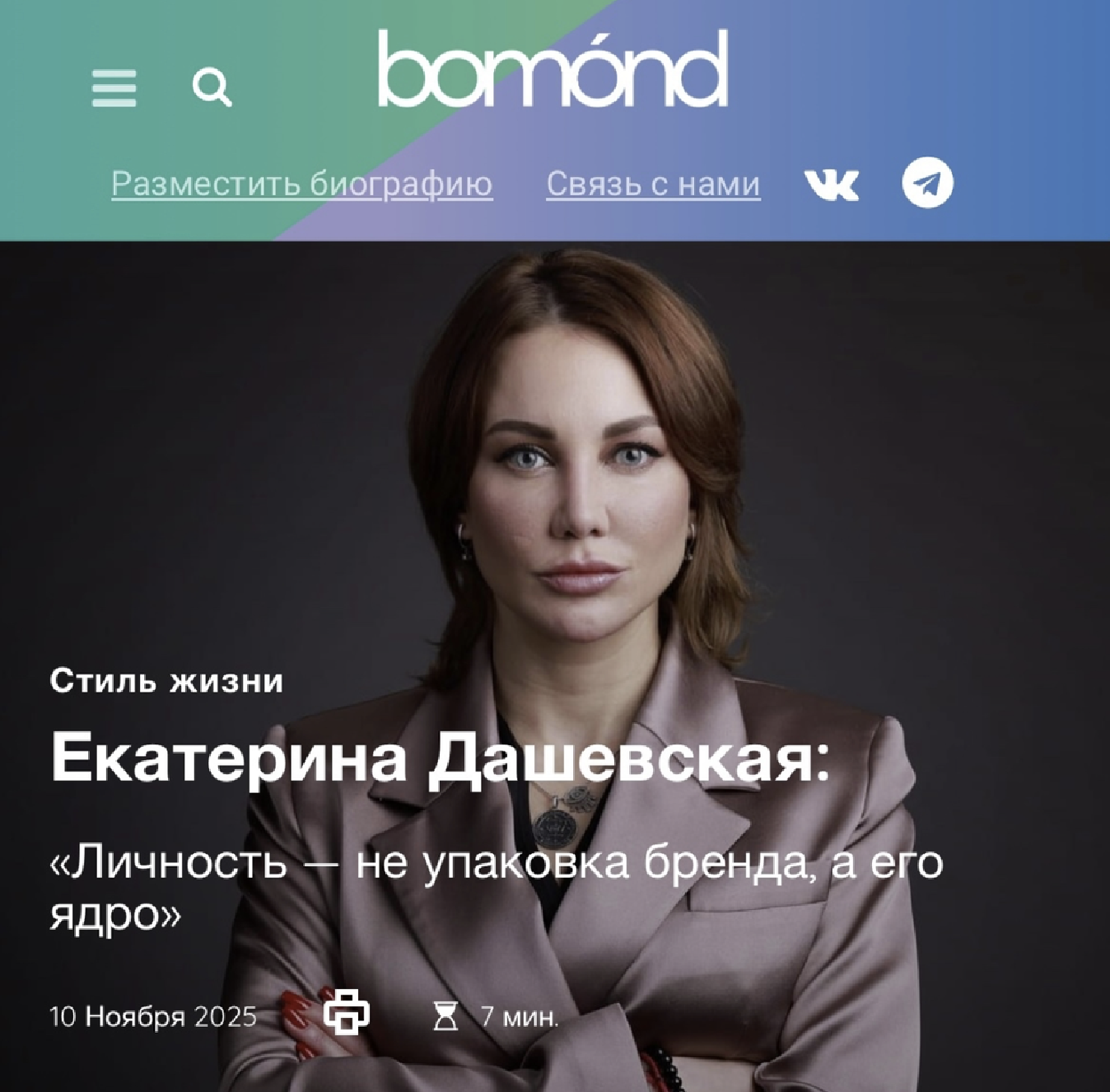 Екатерина, Вы часто говорите: «Влияние начинается с внутренней правды». Что это значит на практике? Для меня публичность — это не про «понравиться». Скорее, от обратного: это совпадение человека с самим собой. Когда слова не спорят с интонацией, решения с ценностями, а амбиции — с ответственностью. Все остальное — лишь декорация, а симулякры я не люблю. Я — выпускница философского факультета МГУ, нас так учили: медиатехнолог по ремеслу и правозащитник по сути. Эти три роли говорят об одной вещи: влияние невозможно без внутренней согласованности. Екатерина Дашевская. Фото из личного архива. Почему Вы считаете, что личность важнее логотипа? Доверие к компаниям вернулось к человеку. Рынок устал от обезличенного капитала. В зеркале аудитории — персональная ответственность лидера. Если раньше можно было «спрятаться» за корпоративный тон, то сегодня конкретный человек решает, верят бренду или нет.