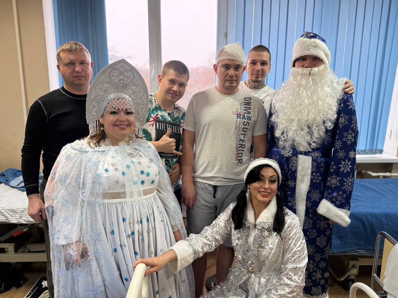 Настроение у всех было по-настоящему праздничное! Ребята очень тепло принимали Снегурочек и Деда Мороза, улыбались, фотографировались, вытаскивали бумажки с добрыми предсказаниями на 2026 год. Пускай у наших героев исполнятся все желания, загаданные под Новый год! А их здоровье сейчас в надёжных руках лучших военных врачей страны!
