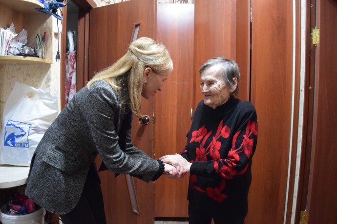 Вера Семёновна — абсолютно героическая бабушка! В ноябре ей исполнился 101 год, и в таком почтенном возрасте она полна сил и оптимизма. Руководит соседями, объединяет их для благоустройства двора! Обязательно встречаюсь с Верой Семёновной несколько раз в год: в новогодние праздники, на День Победы. Сегодня по доброй традиции тоже привезла ветерану гостинцы. Главное, чтобы в новом году у Веры Семёновны было крепкое здоровье и много энергии, а по всем вопросам, конечно, будем ей помогать!
