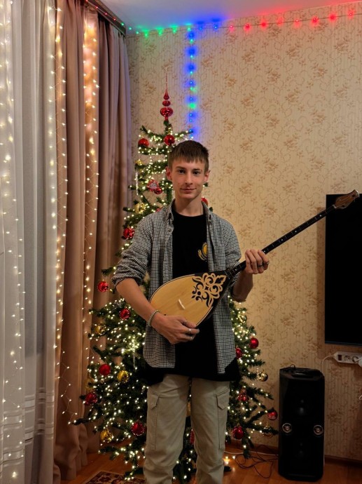 ❄️Активного, талантливого парня. Он давно увлечен музыкой и играет на гитаре. Летом 2025 года на конференции «Расулевские чтения» Артем впервые услышал звучание домбры. Этот инструмент настолько его очаровал, что стал главной новогодней мечтой. Моя помощница передала Артему подарок. Он уже учится играть на домбре.