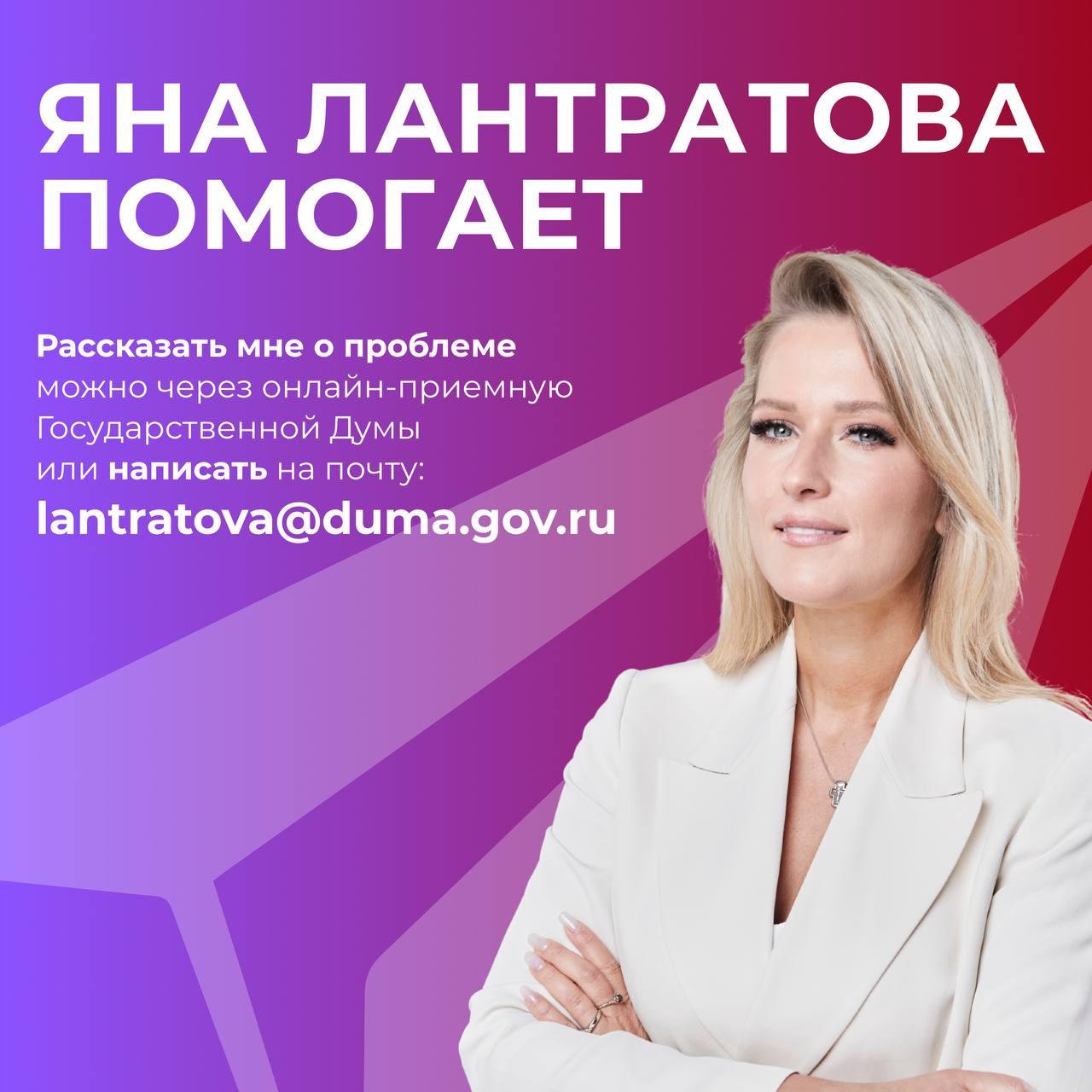 📩Рассказать мне о проблеме можно через онлайн-приемную Государственной Думы или написать на почту lantratova@duma.gov.ru