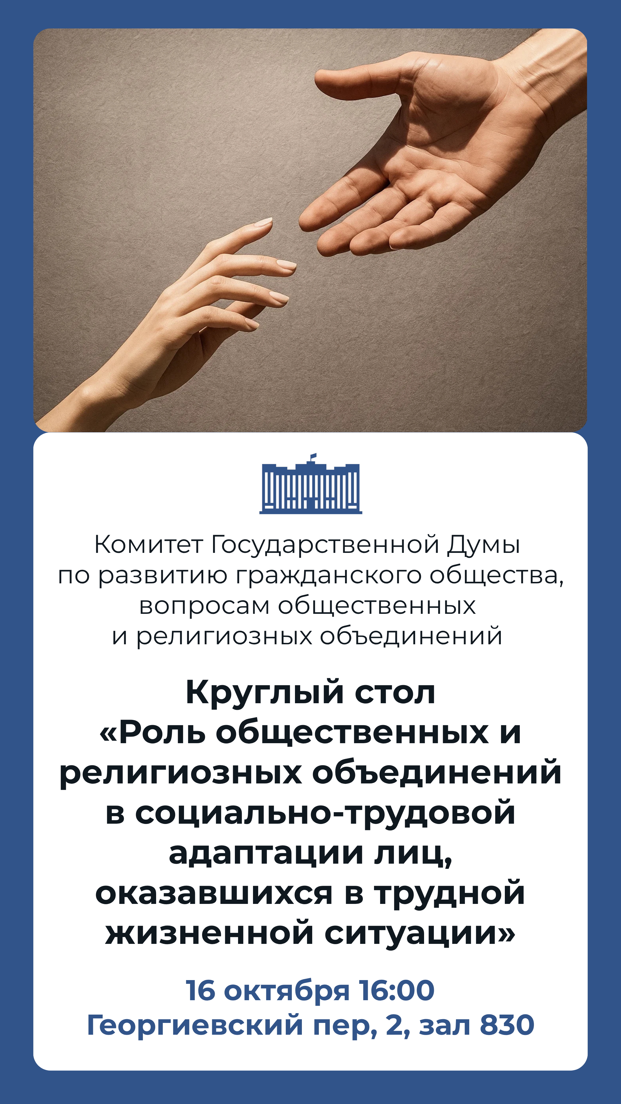 Сегодня Комитет провел круглый стол на тему: «Роль общественных и религиозных объединений в социально-трудовой адаптации лиц, оказавшихся в трудной жизненной ситуации»