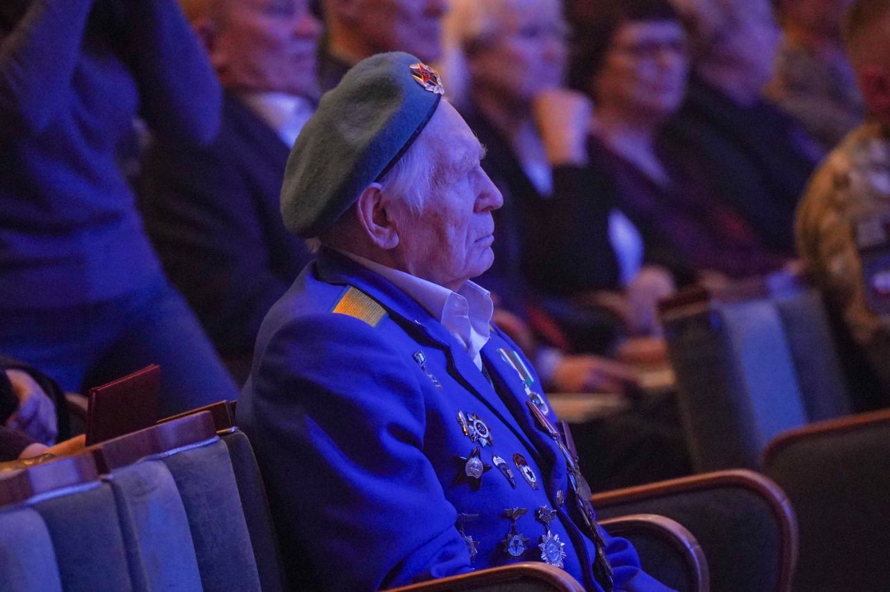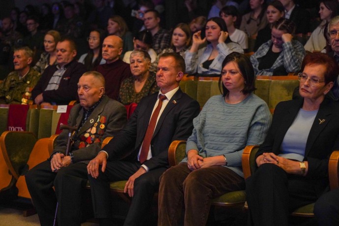 В зале Драматического театра — участники боевых действий, ветераны правоохранительных структур; те, кто помогал своим трудом и знаниями укреплять тыл нашего государства.