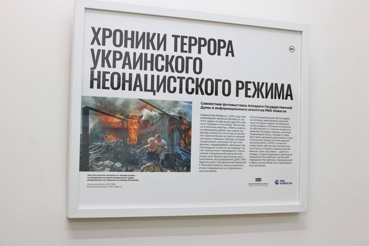 Выставка — это окно правды, наш ответ на ложь, архив преступлений. Пока кто-то пытается представить агрессоров жертвами, фотографии раскрывают истину. Они показывают лицо украинского неонацистского режима, который ведет войну с мирными стариками, женщинами, детьми.