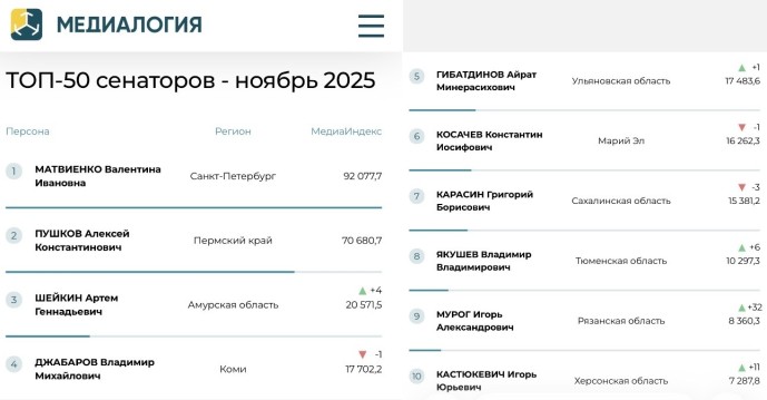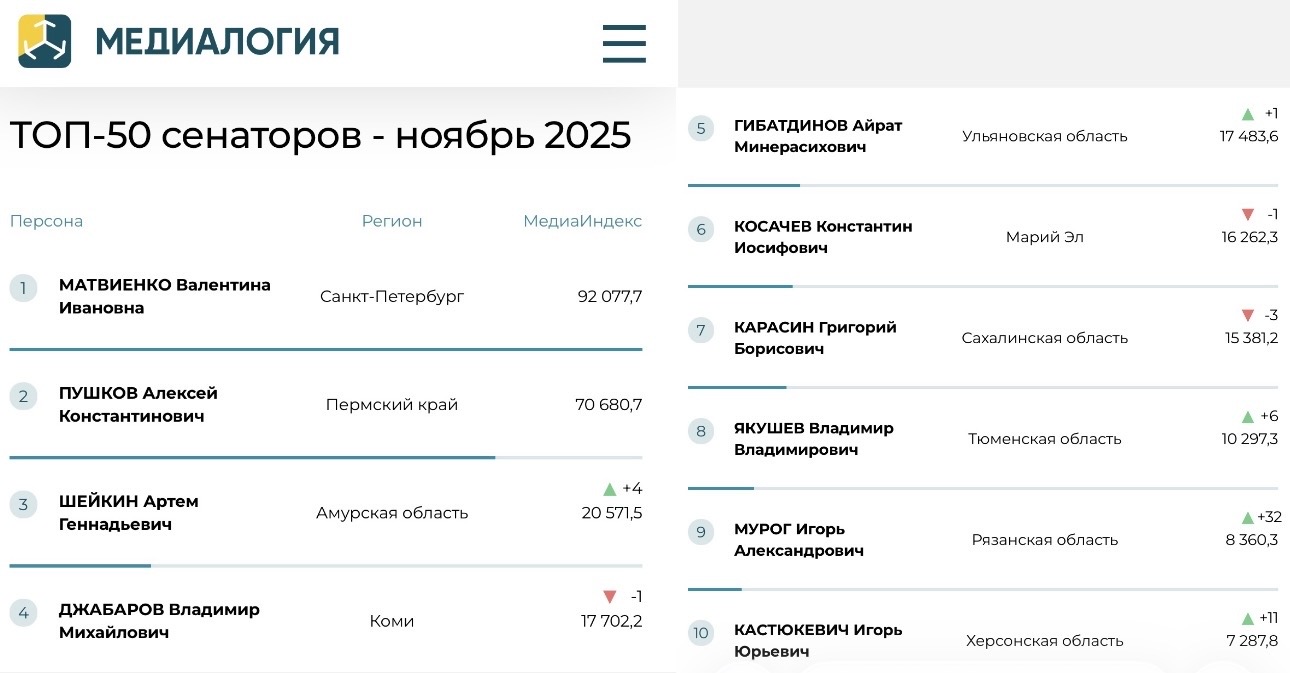 Вошел в первую десятку рейтинга «Медиалогии» по итогам ноября, заняв 9 место.