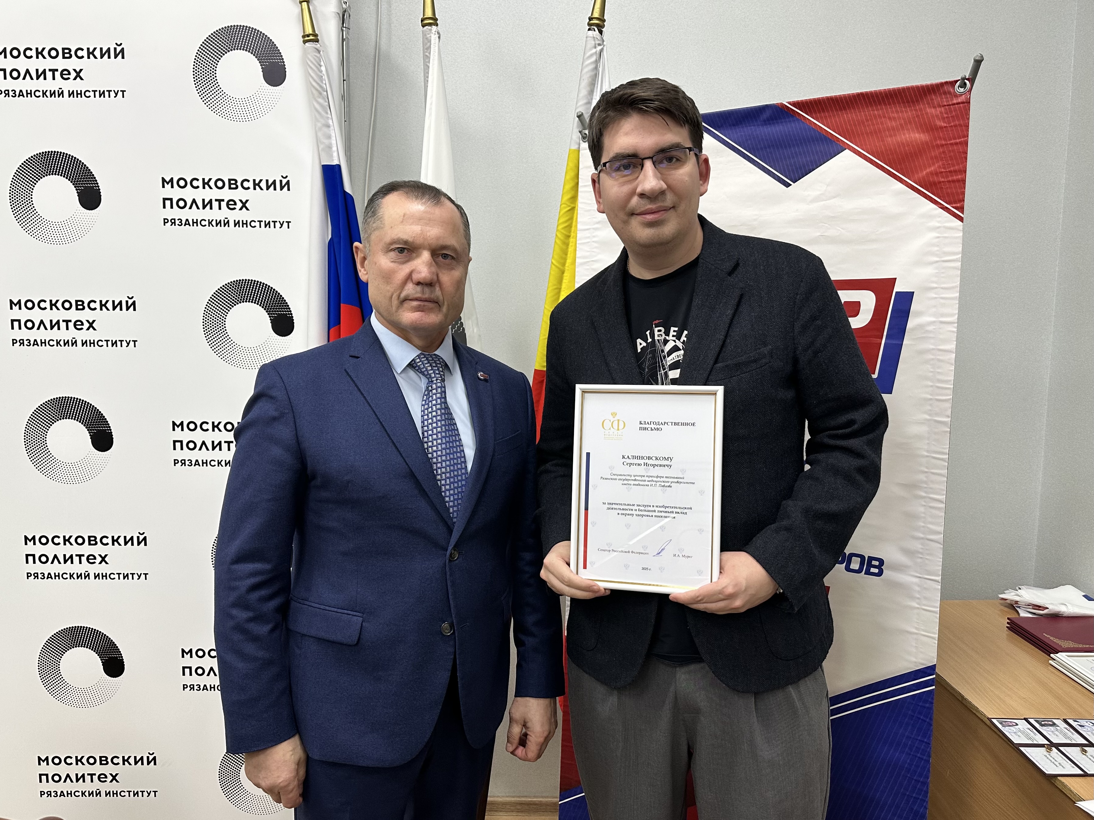Традиционно вручил награды за вклад в развитие изобретательства. Благодарственные письма сенатора РФ получили Алексей Чернышев (Рязанский Политех) и Сергей Калиновский (РязГМУ). Также приняли в ряды ВОИР новых членов.