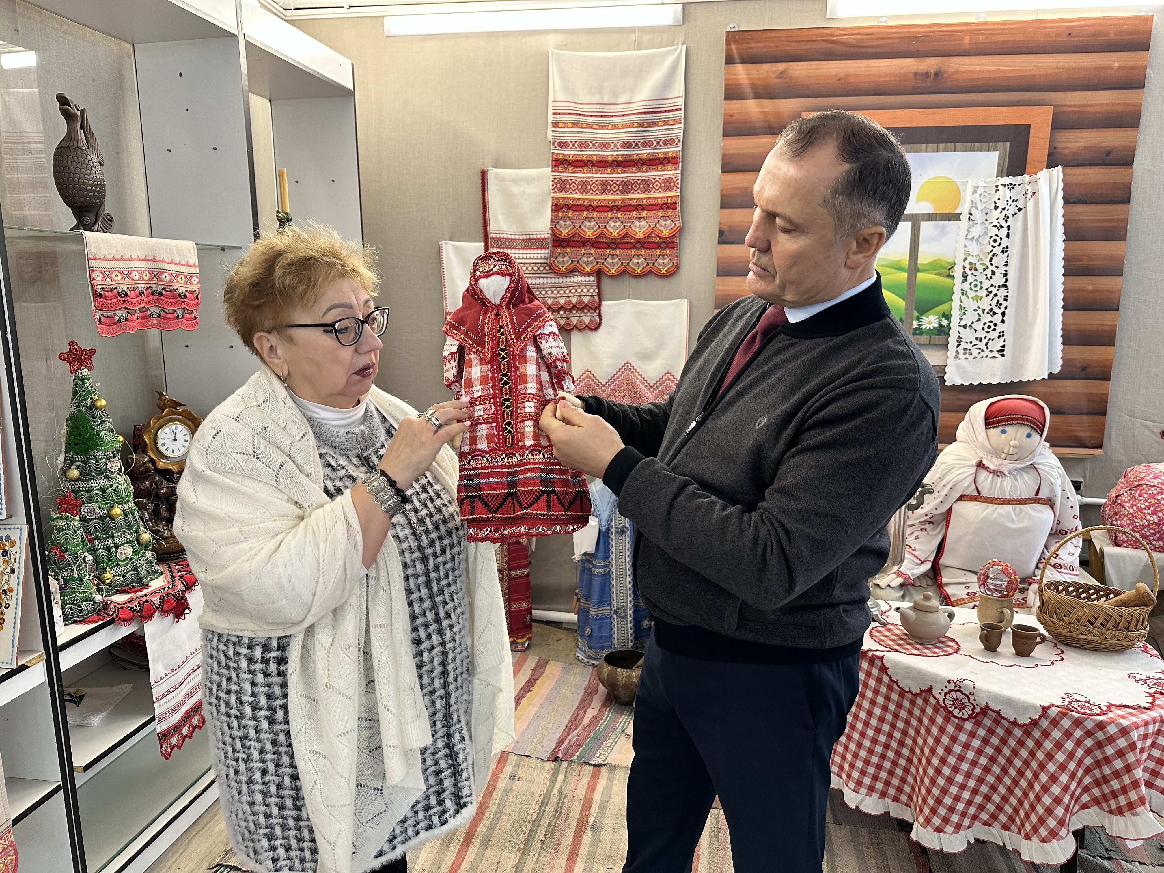 Поздравил главного художника предприятия Татьяну Преснову с юбилеем и присвоением почетных званий Народного художника РФ и Почетного гражданина Рязанской области. Татьяна Николаевна посвятила промыслу более 45 лет, возрождая старинные техники и создавая новые изделия. Именно по ее инициативе при моей поддержке была зарегистрирована в Роспатенте «Михайловская кукла-коклюшка» – уникальный рязанский бренд, внесенный в Реестр географических указаний.