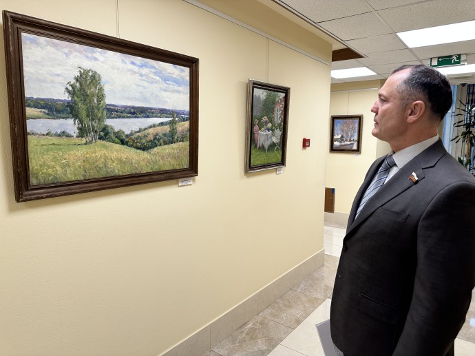 Посетил в Совете Федерации выставку «Край ты мой родной» члена-корреспондента Российской академии художеств Сергея Борисова, посвященную 130-летию со дня рождения Сергея Есенина.