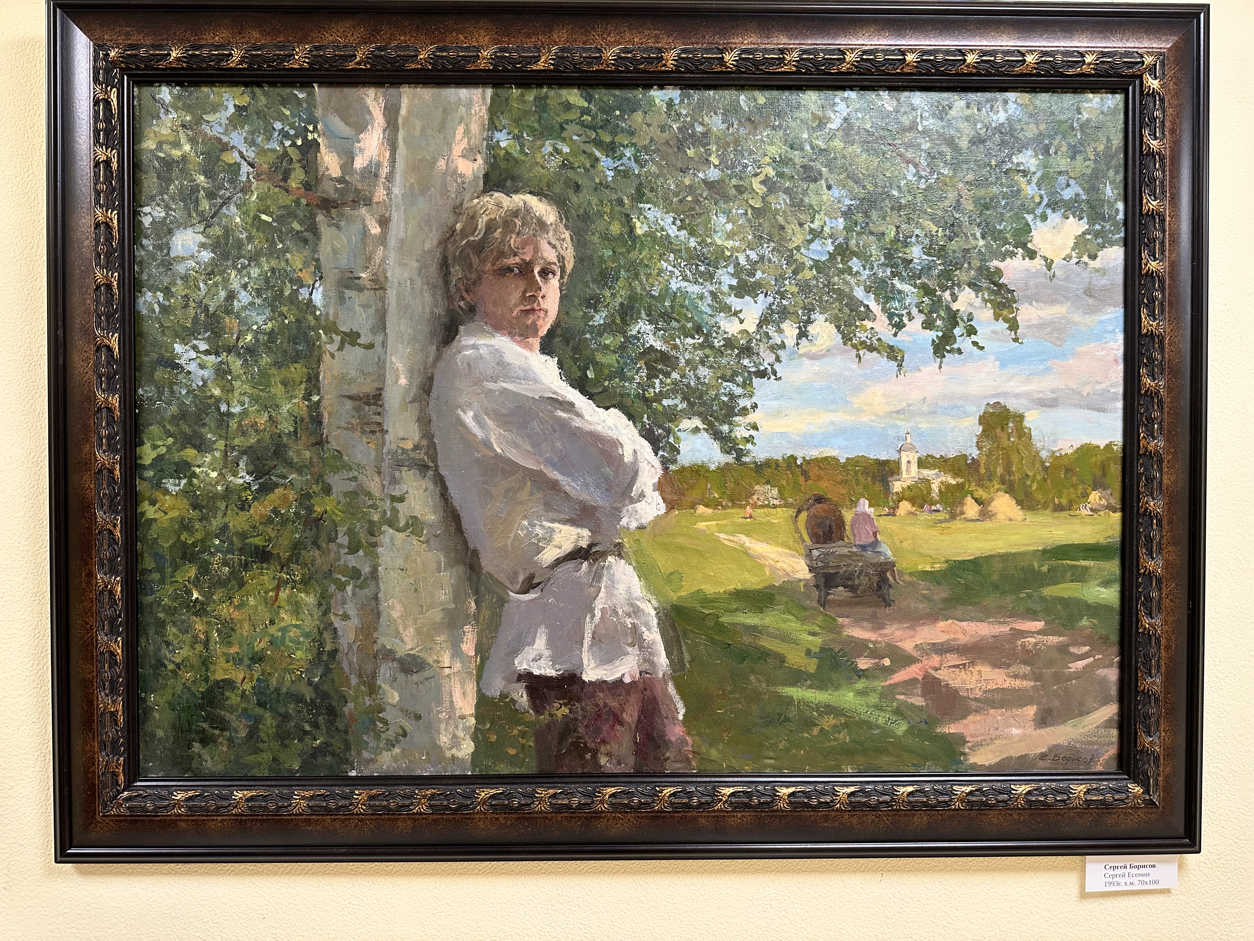 В экспозиции около 50 живописных произведений – портрет поэта, жанровые картины и пейзажи. Художник, путешествуя по местам, связанным с Есениным, создал целый цикл работ.
