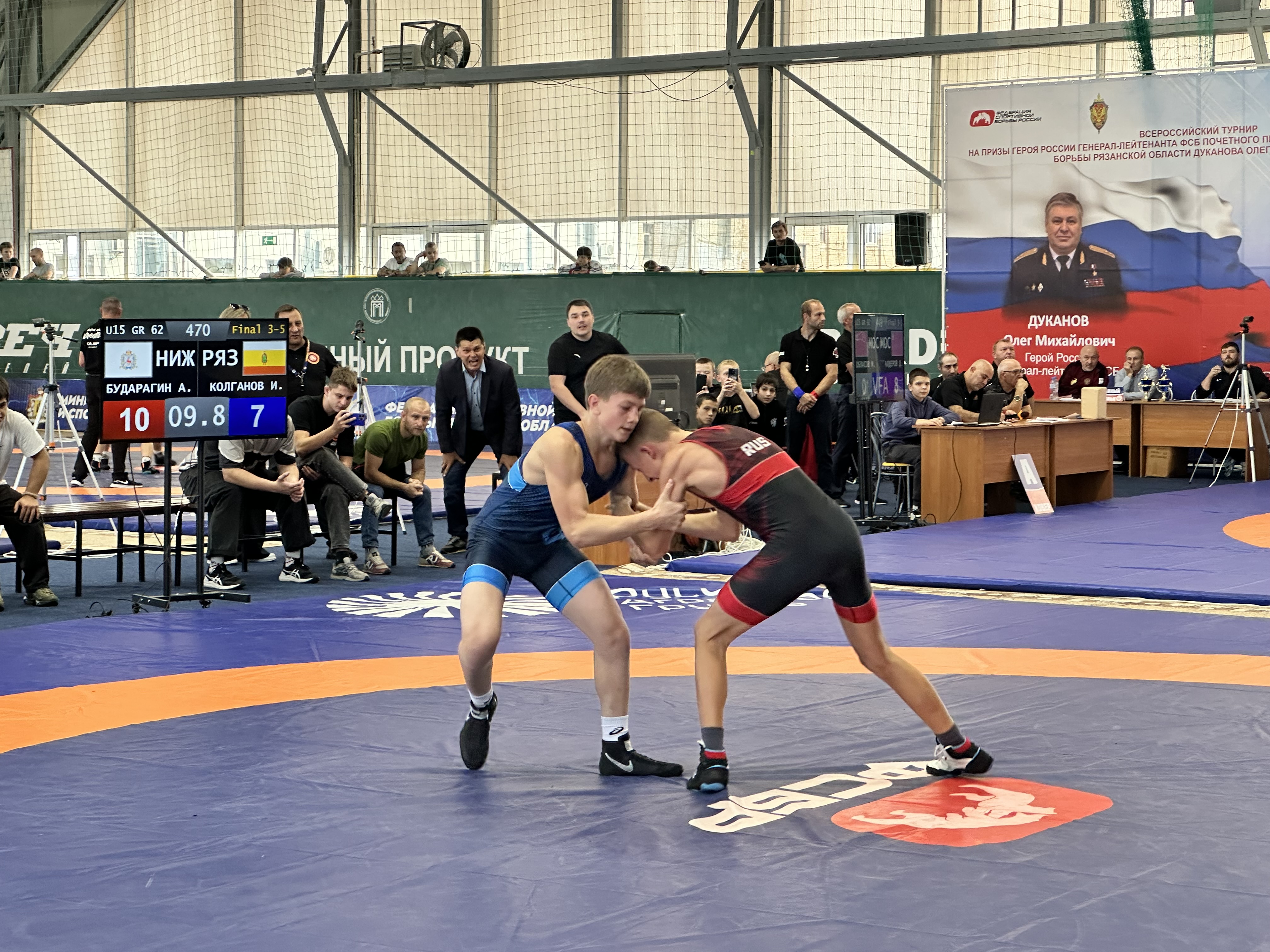 В Рязани завершились IV Всероссийские соревнования по греко-римской борьбе среди юношей до 16 лет на призы Героя России Олега Дуканова. Турнир собрал около 500 спортсменов из 38 регионов страны – от Крыма до Хабаровска.Для нашего региона особенно значимо, что соревнования носят имя Олега Михайловича Дуканова – выпускника Рязанского высшего военного автомобильного училища, который возглавлял УФСБ по области и внес большой вклад в развитие спортивных федераций региона.