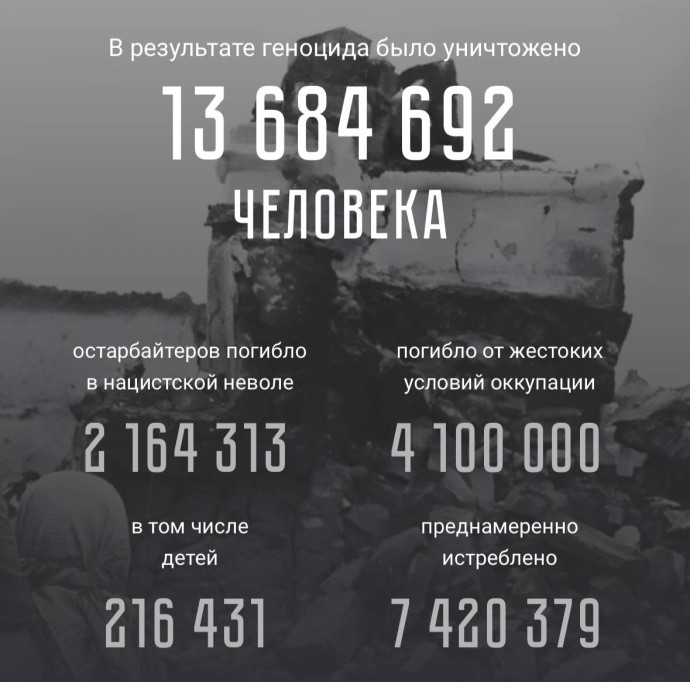 Миллионы невинных жизней — стариков, женщин, детей — были вырваны нацистской машиной смерти и их приспешниками. Это наша общая, незаживающая рана.