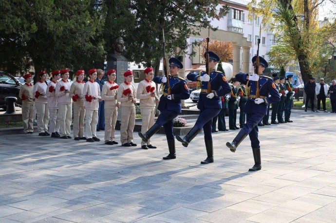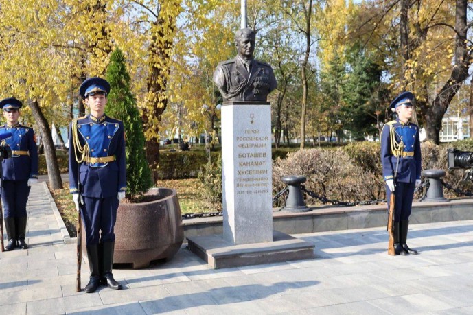 Возложили цветы к памятнику Героя России генерала-майора Канамата Хусеевича Боташева, героически погибшего в ходе специальной военной операции.