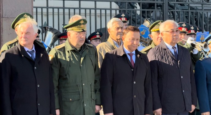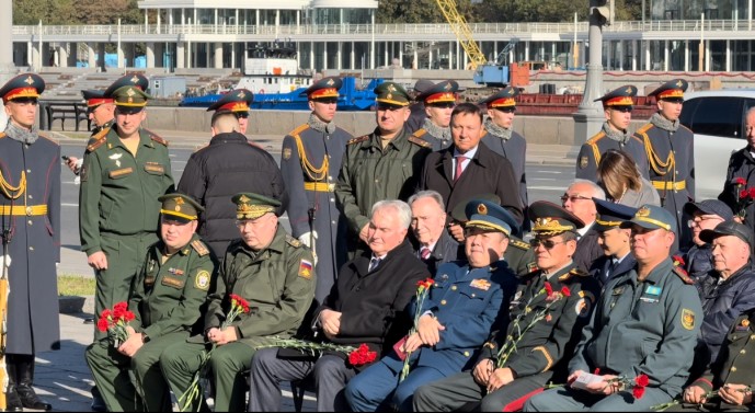 Праздничное мероприятие сопровождалось церемонией возложения венка и цветов, торжественным прохождением почётного караула и военного оркестра, а также награждением памятными медалями «80 лет Победы над Японией».