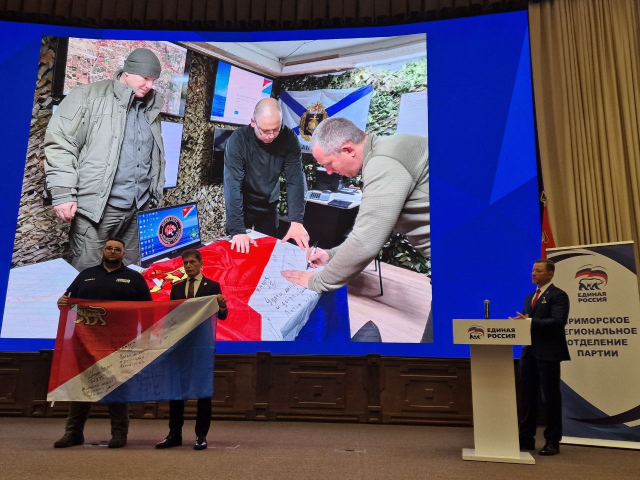 Секретарь регионального отделения партии, Губернатор Приморского края О.Н. Кожемяко высоко оценил деятельность «Единой России». В своем выступлении он подвел итоги прошедших муниципальных выборов, на которых депутатские мандаты получили 11 вернувшихся бойцов СВО, а явка избирателей составила рекордные для такого уровня 33%, отметил масштабную работу по поддержке участников СВО и их семей, а также активное вовлечение молодежи.