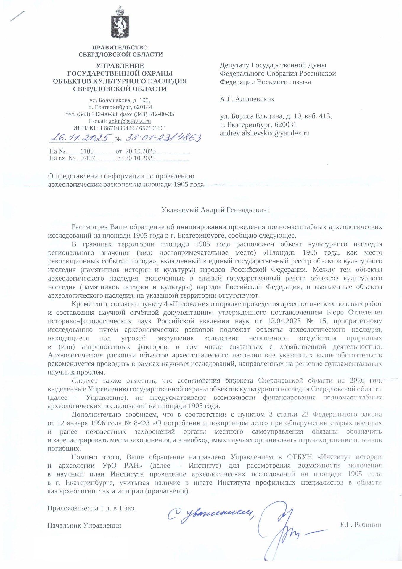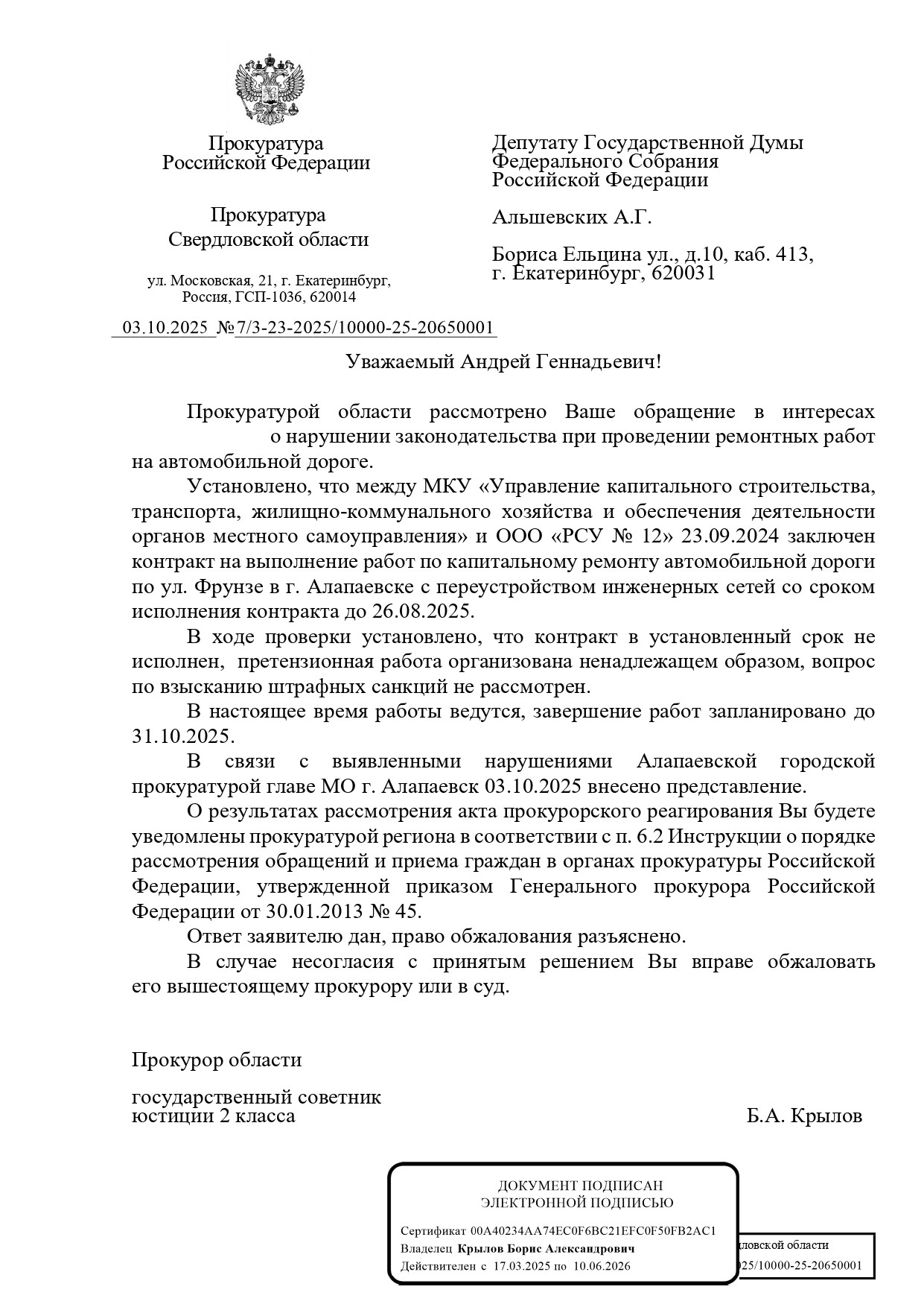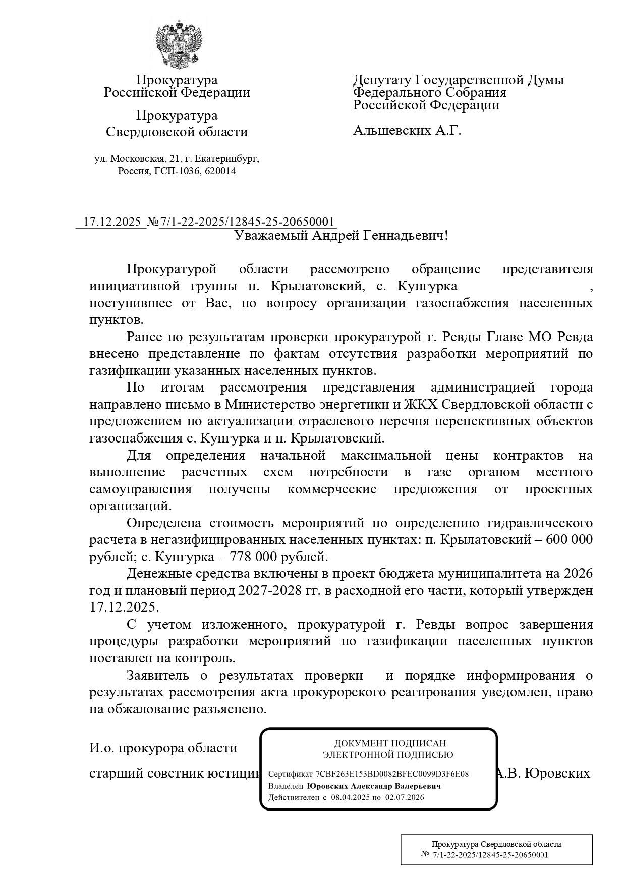 Депутат Государственной Думы РФ от Екатеринбурга, Верхней Пышмы и Среднеуральска